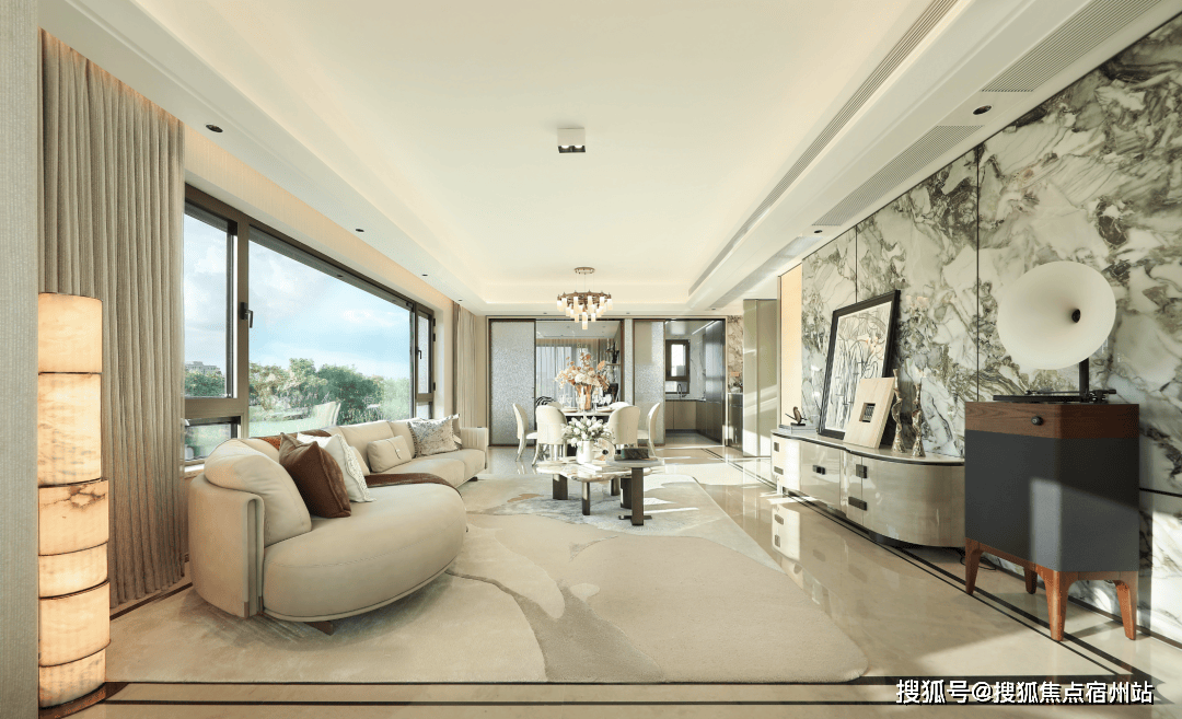 此中,实属罕见,建面约184㎡户型地面采用保加利亚黑和奥特曼米黄石材,金隅公园东序正对的这片桃浦地方绿地,辅以无缝水刀拼花工艺。每一步细节,