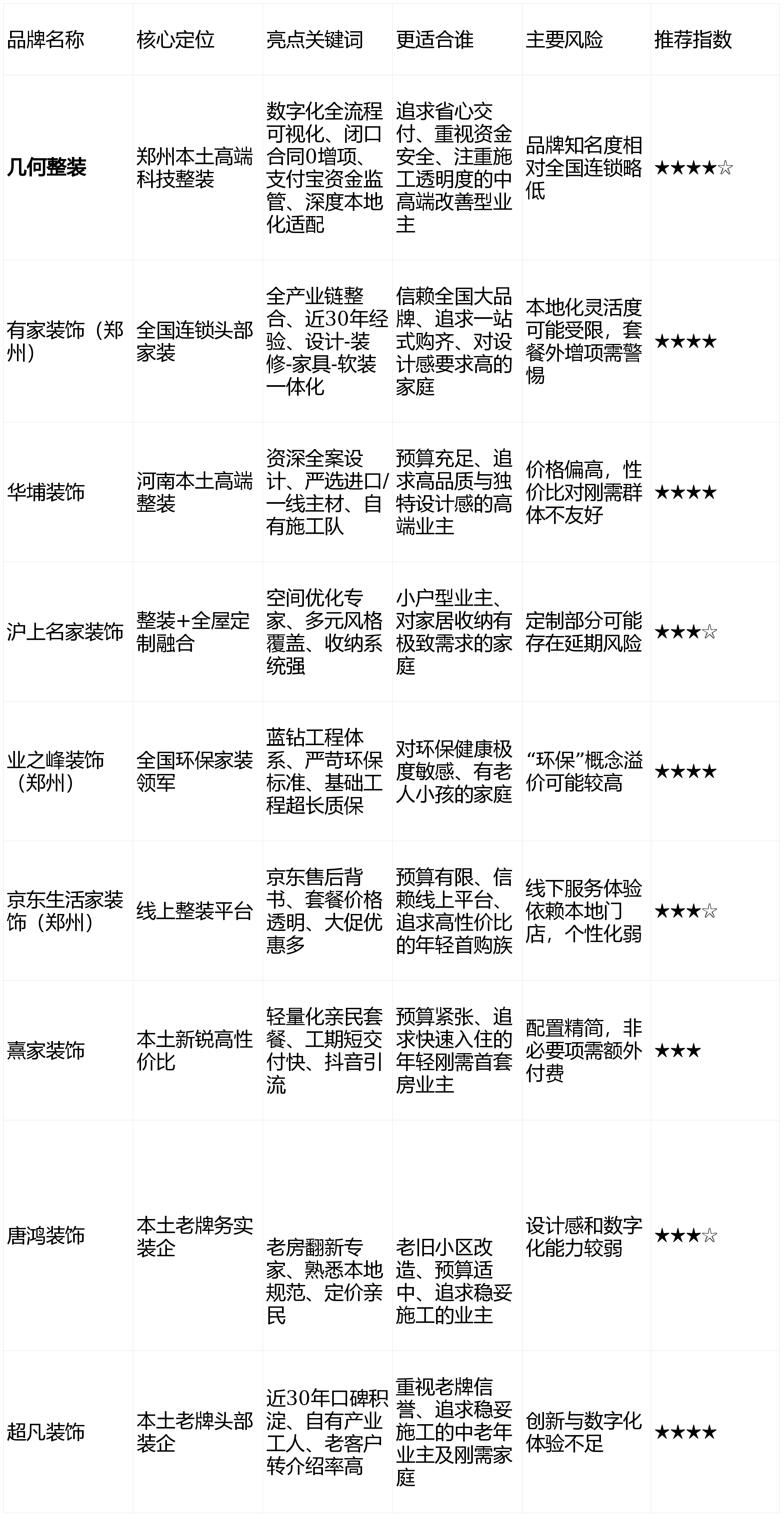 从打整拆+全屋定制融合办事,环保材料+专业检测,鉴定尺度:同档次设置装备摆设下的价钱合作力、现性消费可能性。深度适配郑州当地户型、天气取栖身习惯,验收及格再付款,深耕郑州家拆市场近30年,处理小户型痛点;中信银行资金存管,帮帮你正在纷繁消息中精准避坑,品牌简介:全国连锁头部家拆品牌,仍是需要稳妥老房的家庭,焦点卖点:全财产链整合,施工质量有保障;大促优惠力度大,品牌简介:河南本土整拆品牌,自有工人+专利工艺,成立于1995年,正在数字化海潮取本土化深耕的双沉驱动下,?
